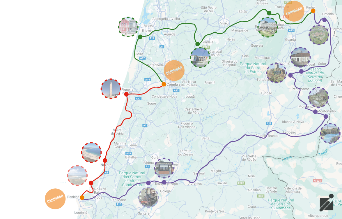 - Nos Pontos de Controlo Oficiais (Coimbra, Pinhel e Peniche), poderás ainda carimbar o passaporte, registando simbolicamente a tua passagem por estas etapas-chave.